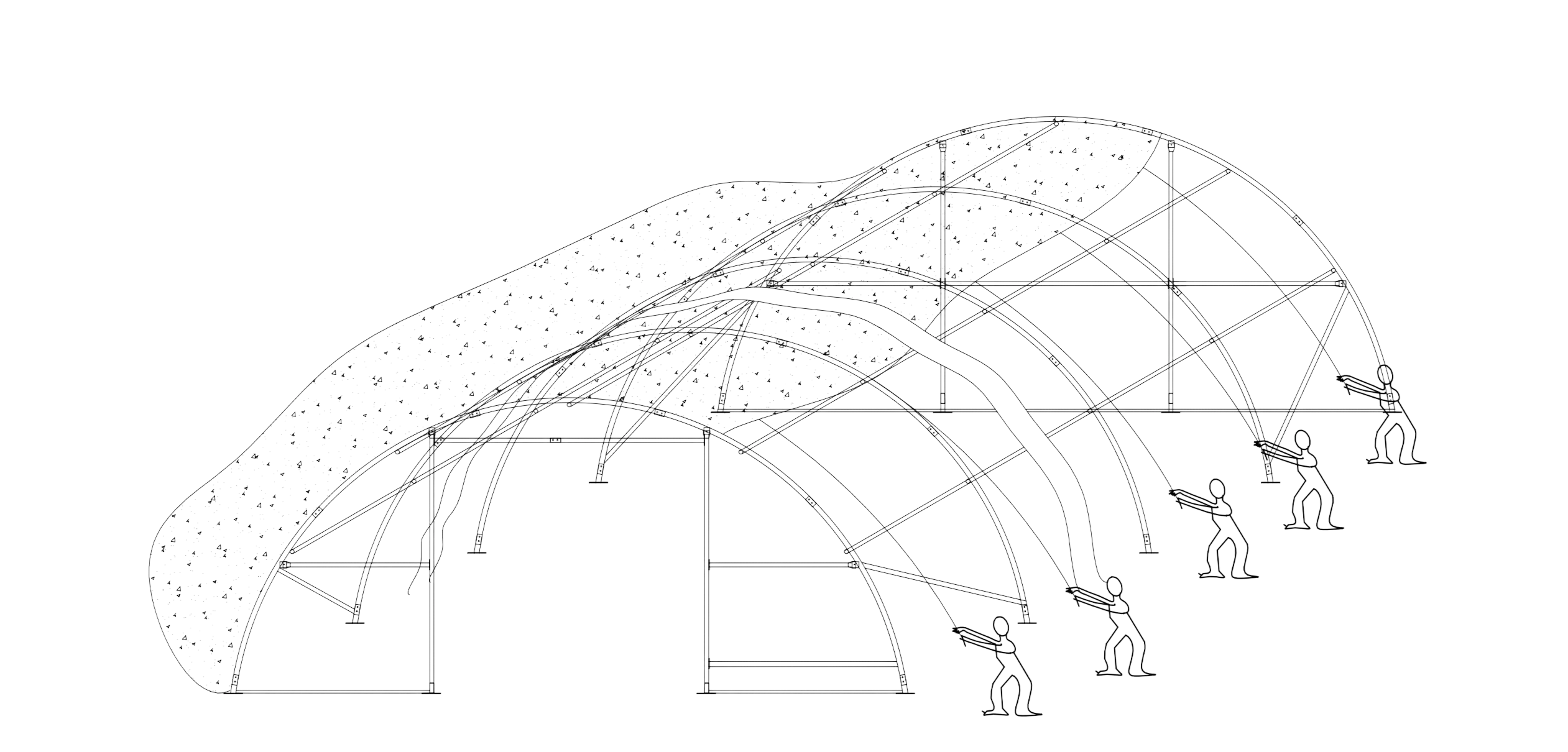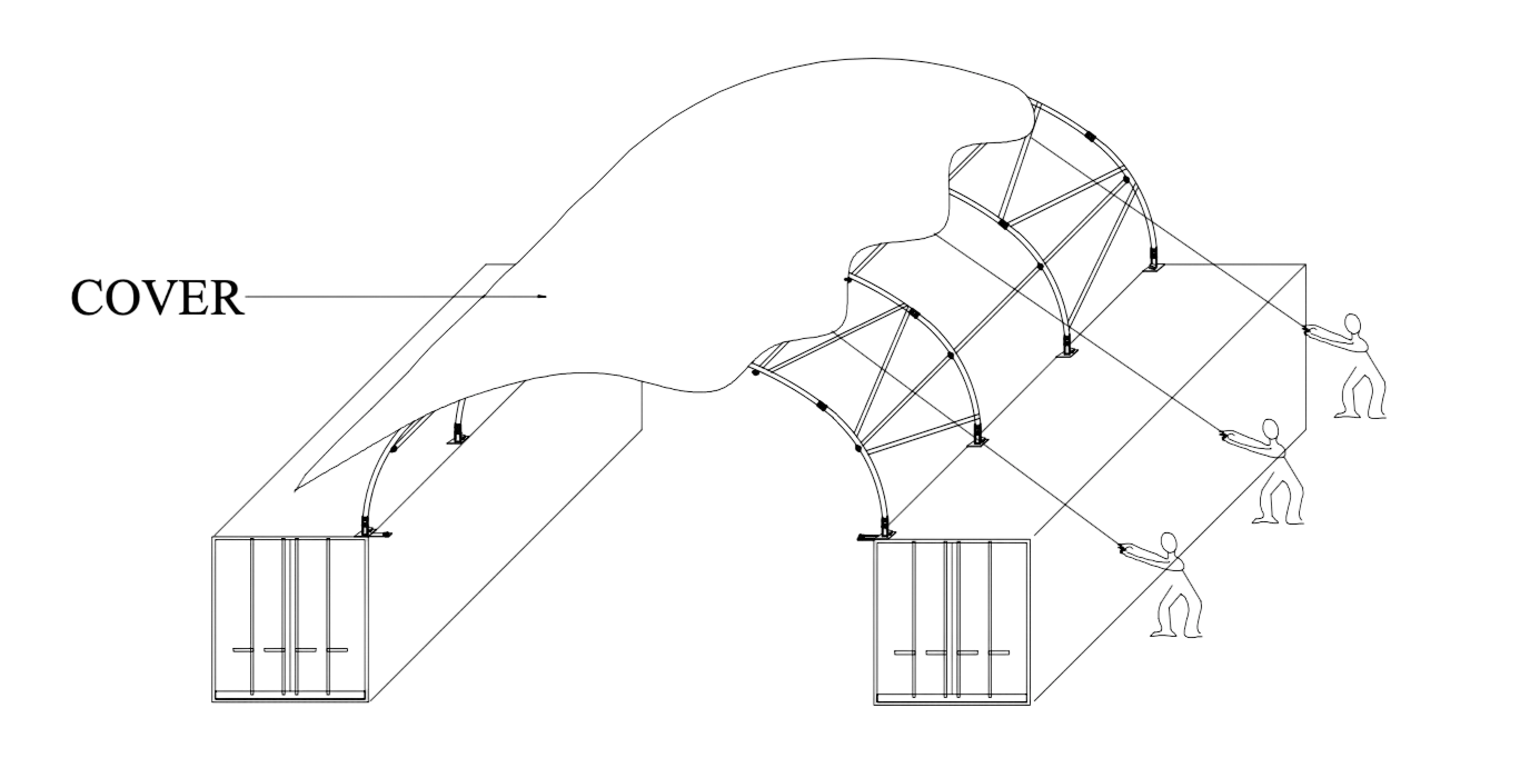 Le toit voûté est composé d'arcs verticaux renforcés par des tubes en acier horizontaux et solidement reliés entre eux par des joints boulonnés. Cette forme de toit empêche l'accumulation d'eau et de saleté même sur de longues périodes, car la pluie et la saleté peuvent s'écouler uniformément.