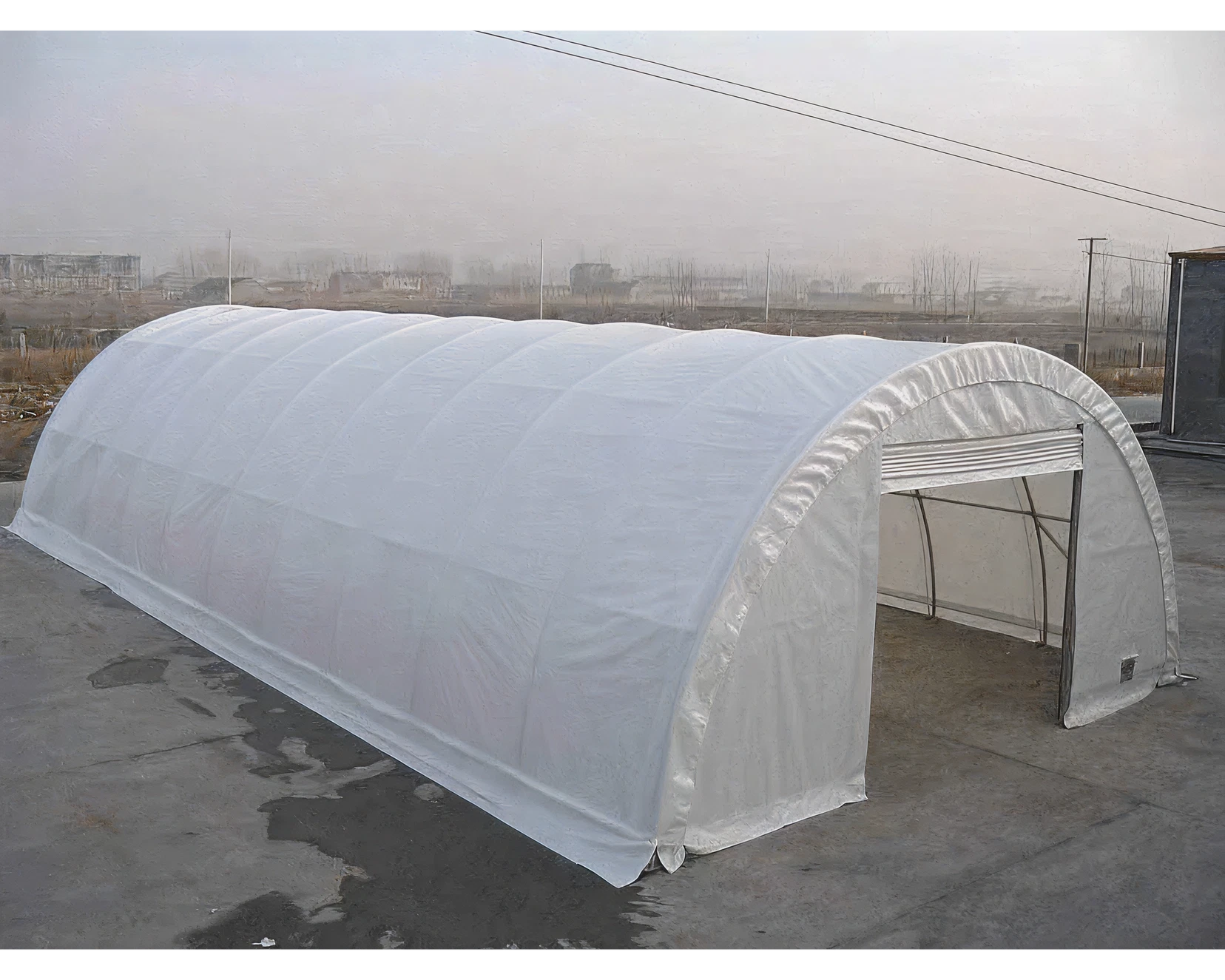 Vous pouvez choisir entre un revêtement en tissu PVC pour une installation plus rapide et des coûts initiaux plus bas, ou un revêtement en acier ou isolé pour une durée de vie plus longue et une utilisation permanente. Tous les kits sont conçus pour être solidement boulonnés à une dalle de béton ou une base préparée.