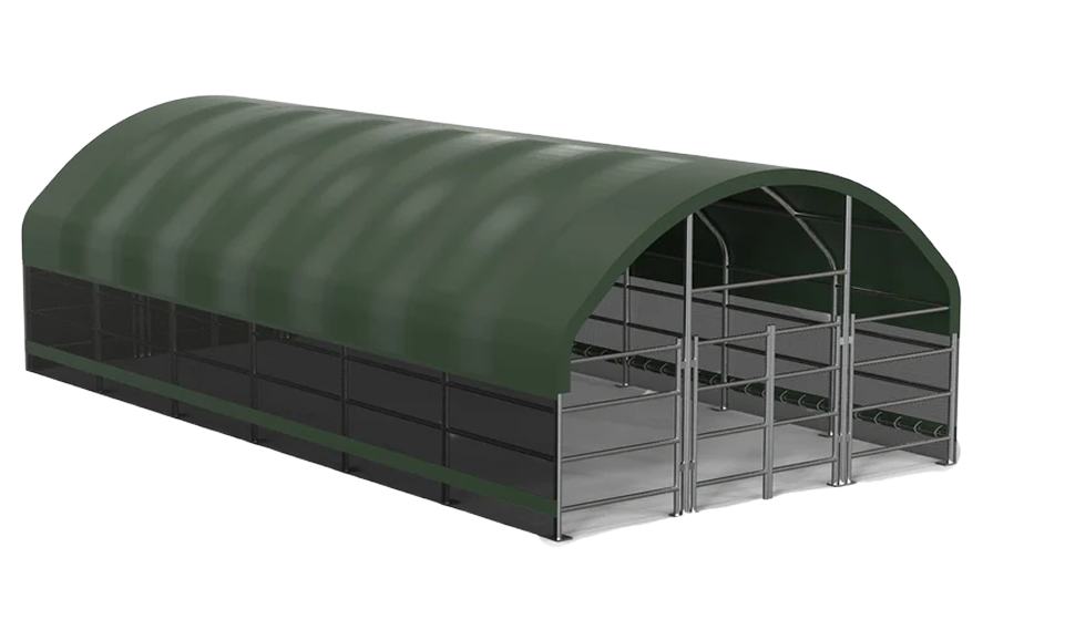 Nos abris d'élevage fermés offrent une protection fiable contre les éléments et un hébergement sûr pour le bétail, les moutons, les chèvres et autres animaux de la ferme. La construction modulaire est conçue pour une utilisation toute l'année et assure une protection fiable contre la pluie, le vent, le froid et le soleil intense.